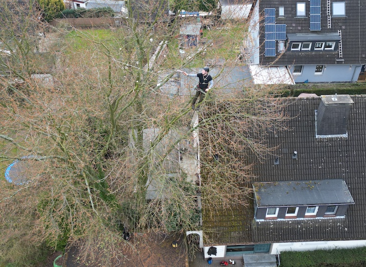 Das ist eine spezielle Klettertechnik, um sicher in Bäumen arbeiten zu können. Hierzu wird vom Boden aus über ein Wurfgewicht, ein Seil eingebaut, woran man aufsteigen, arbeiten und sich wieder ablassen kann. Somit kann man jeden Baum und jeden Bereich im Baum erreichen.