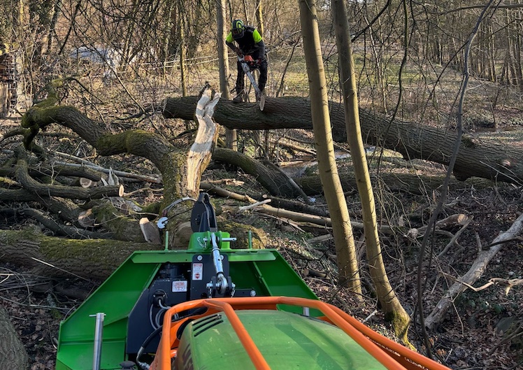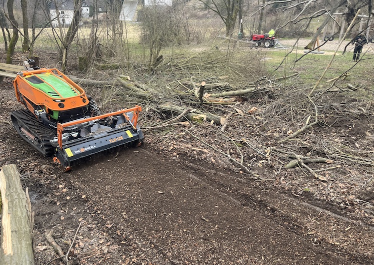 - mit einem Forstmulcher zum zerkleinern von Holz und Buschwerk